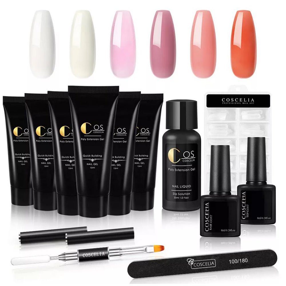 Een compacte polygel nagel extension set van Coscelia. Een volledig pakket met een gels, coats, accessoires en alle andere benodigdheden... Lees meer