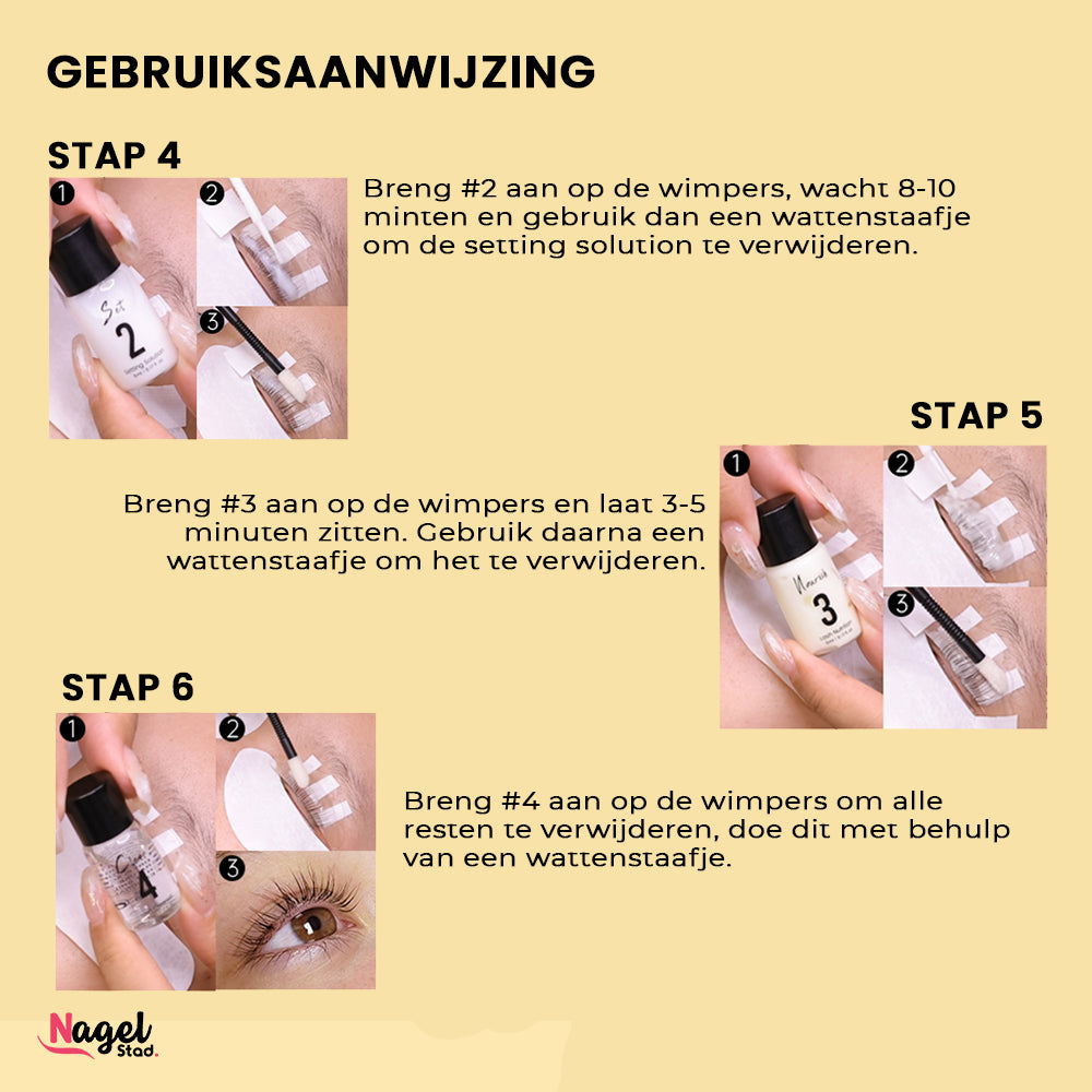 Lash Lift Adhesive: Water, Polyvinyl Alcohol, Aloe Vera Extract, Caprylhydrocamic Acid, Allantoïne, 1,2-Hexanediol.